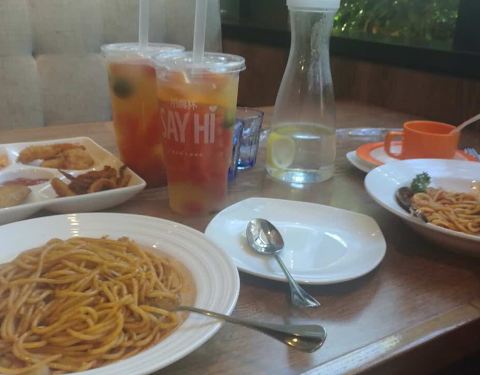 用券,加上活动,还是很划算的。麻辣小龙虾意面比披萨更赞哦~还有超大杯水果茶~
