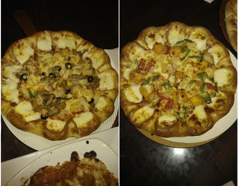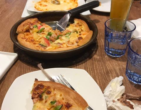 瑞景这家必胜客感觉环境和服务都稍稍好一点,也没有非常多的顾客,所以比较安静吃的挺舒服。三个人店了两份小盘披萨、意式肉丸芝士焗饭、可可西里风情意式肉酱千层面、芝士焗面还有很多小食,撑到爆。至尊披萨和...瑞景这家必胜客感觉环境和服务都稍稍好一点,也没有非常多的顾客,所以比较安静吃的挺舒服。三个人店了两份小盘披萨、意式肉丸芝士焗饭、可可西里风情意式肉酱千层面、芝士焗面还有很多小食,撑到爆。至尊披萨和鲑鱼披萨选择了芝心的,意式肉丸比想象中好吃很多,有弹性!千层面比较油腻但也真心好吃,根本停不下来,芝士焗面显得一般般,但是吃起来咸中带着微甜超好吃。点的饮料法式焦糖布丁奶茶很浓,但是太甜了!