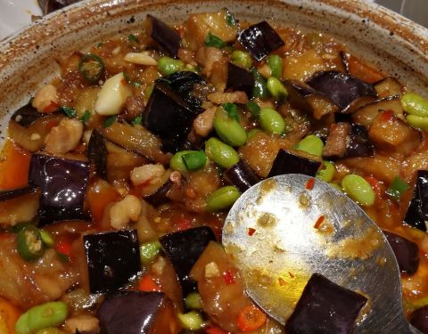 ①麻婆豆腐可以做不辣和辣味两种,豆腐很嫩,如果有老人和孩子,不辣更合口一些;②东坡肘子,绝对算是眉州的招牌菜,肥瘦合适,软烂入味;③东坡江团鱼这次做的很到位,火候刚刚好,鲜嫩爽滑,入口即化;④眉州东坡香肠,偏红的辣味,偏白的不辣,是川菜里的招牌,也是眉州的特色菜之一,看似有些肥却不腻,还不失嚼劲;⑤东坡藤椒肥牛,麻辣鲜香,很入味,但肥牛嫩度差了一点;⑥毛血旺,每次的必点品,里面菜品丰富,分量十足,不过这道菜,每次上菜都不太稳定,毛肚和肥肠时多时少;⑦海白虾,有两种做法,都各点了一斤,一“煮”一“炸”,个人比较偏爱“煮”的做法,沾上调位汁口味鲜嫩,又不失营养,椒盐炸虾,口味略咸,也失去虾原有的鲜味;⑧东坡山竹笋,用的是春笋,嫩而清脆,和梅菜碎咸肉沫在一起,调味很独特,推荐可以尝试一下;⑨泡椒牛蛙,牛蛙新鲜嫩滑,红色的灯笼椒和绿色的莴笋让整道菜色彩丰富,吃起来酸酸辣辣👍;⑩经典辣子鸡,整道菜无论是视觉感还是口感都是“爽辣”的感觉,鸡丁香酥脆爽,就有量太少了点,一大盘几乎都是浓浓的红辣椒,希望可以改善一下。