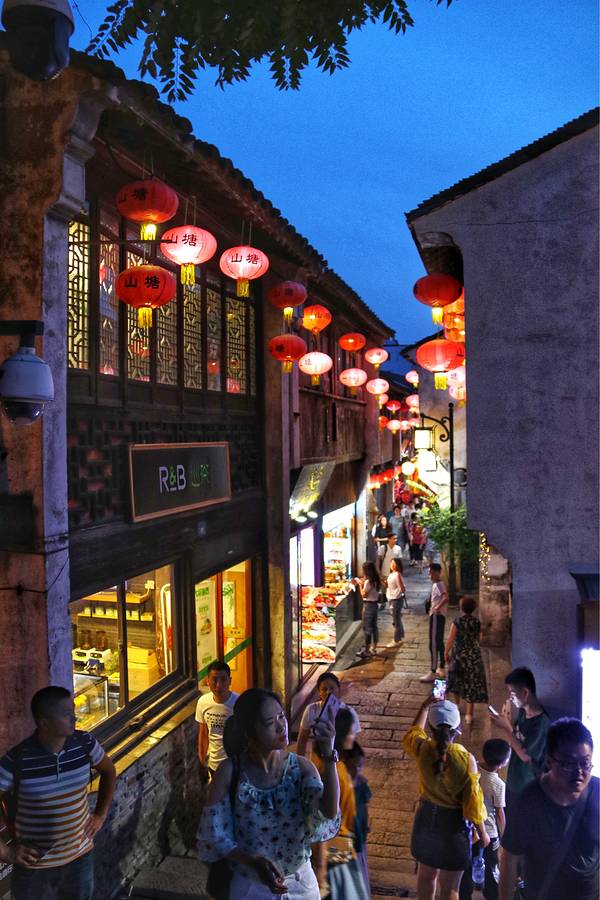 出门闲逛首选的肯定都是一些特色的小街~繁华又有味道,特别是经济又实惠,关键还好吃的地方,我比较懒~是搜索一些攻略打卡的(其实是为了方便去下一站,想压压马路...hh);这是上海的老街,里面有很多特色的店面,特别是上海的城隍庙,都说可以求姻缘 哈哈老庙街道不远处的高楼大厦田子坊 也是上海很有名的小吃街,特别是蟹黄小龙包~一口下午满满的汤汁,简直回味无穷;就是有点小贵,25/个~值;需要买礼物、小物品的都可以去逛一逛,价格适中~可以接受哒;苏州-七里山塘 苏州园林我可是向往已久,一直到只是听说,现在终于可以来见识一下真正的的“上有天堂,下游苏杭”;作为中原地区的孩子,一向一女汉子自居,既然来到了苏杭,也想顺便见识一下什么是淑女~ 抵达苏州的第一站,自然是七里山塘啦~据说也是夜景也超级美,亭台楼宇,溪流边望着夕阳西下,坐在一家小酒馆里,听着音乐~沉迷当下如此美好的夜晚~人生何乐而不为;顺便可以解决一下晚餐,美食也很多,特别是园区出口处一家烤猪蹄,绝了~ 忘记说:七里山塘没有门票,免费的呦~其实这是一家酒店,外边深深的吸引了我~