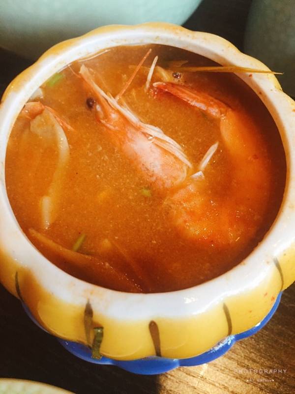 上一次来金榜这家分店,我可能还是个翩翩少年啊,头发大把大把的。如今…… 金象湾是我最喜欢的餐厅之一,这家泰国料理真的很棒,进店找了个角落坐下,十一点多已经有好几桌客人在用餐了。 「马来咖喱鸡」两个人的话点一桌马来咖喱鸡其实就够了,那浓郁的咖喱汤汁就已经能配下好几碗米饭。何况还有鲜嫩的鸡呢和最爱的土豆呢。 「冬阴功汤」每人来一份,吃泰国菜必点。散发着独特的香茅与冬阴功的香气,微辣的口感,每喝一口都让人心旷神怡。 「炭烧猪颈肉」猪颈肉常吃,但是他们家的我最喜欢,嫩到不行。