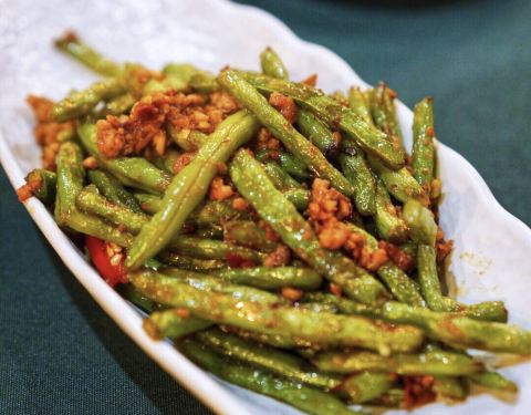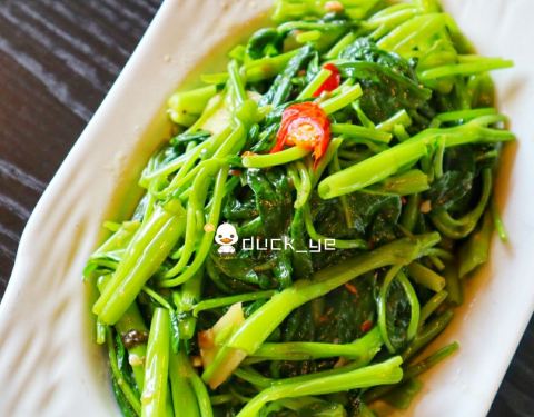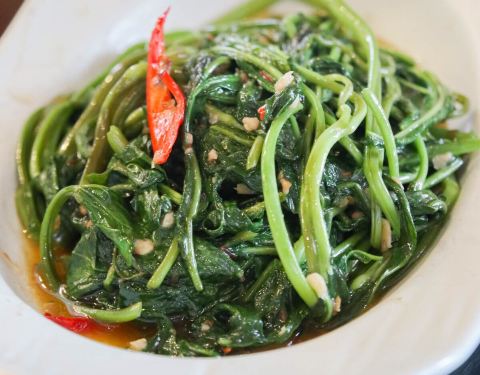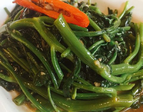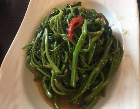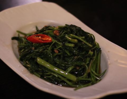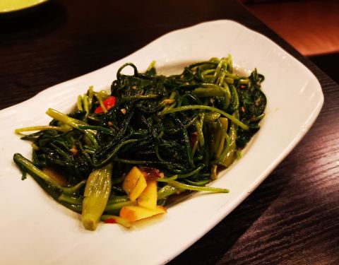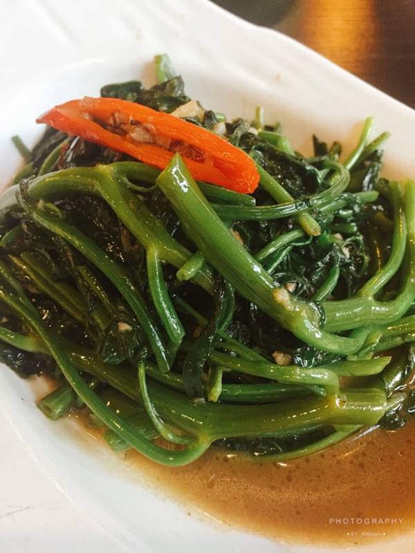 - 「马来盏炒通菜」,青菜很好吃,味道不错,吃起来口感跟平时吃的青菜不一样
