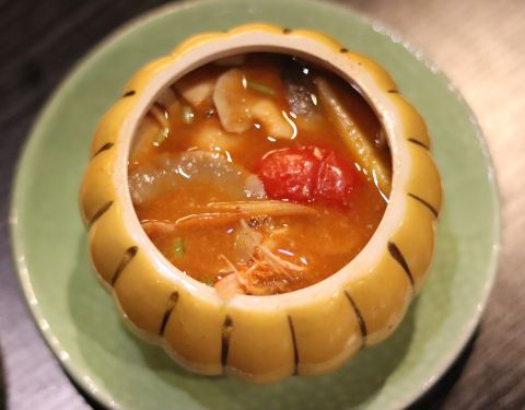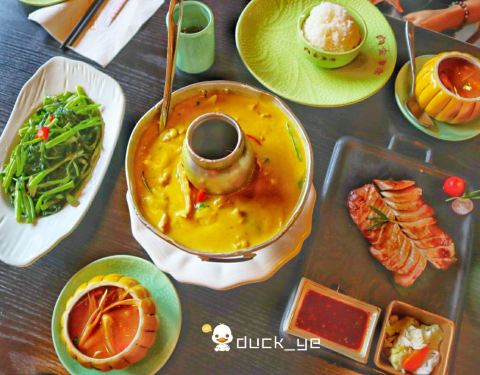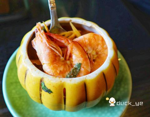 金象湾金榜店,吃泰国菜,冬阴功和咖喱鸡肯定是必点的。冬阴功装在可爱的南瓜盅里,讨巧又诱人,喝一口汤,酸酸甜甜暖到心里。咖喱和肉类是绝配,浓郁微辣的咖喱和嫩滑的鸡肉,让我不由多添了一碗米饭。泰式烤牛...金象湾金榜店,吃泰国菜,冬阴功和咖喱鸡肯定是必点的。冬阴功装在可爱的南瓜盅里,讨巧又诱人,喝一口汤,酸酸甜甜暖到心里。咖喱和肉类是绝配,浓郁微辣的咖喱和嫩滑的鸡肉,让我不由多添了一碗米饭。泰式烤牛舌,颠覆了我以前对牛舌的认知,烤得很嫩很香,沾上秘制的酱汁,绝对让你欲罢不能,这个一定要试一下!