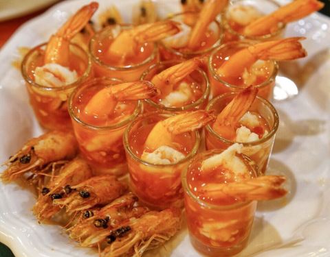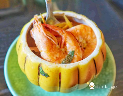 - 软糯的土豆,嫩滑的鸡肉,在咖喱汁的映衬下口感愈发鲜活起来。 香茅浸虾,开胃首选