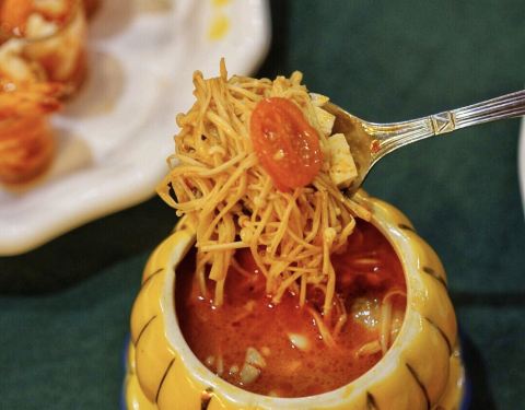 作为厦门泰国菜的鼻祖,金象湾可以说是早已声名在外了。在泰式料理已经星火蔓延后秀迭起之时,金象湾依旧屹立不倒,凭的就是他的那一盘令人魂牵梦萦的咖喱。 咖喱鸡肉,顺滑浓郁的黄咖喱,刚一入口,醇厚的滋味就令人欲罢不能。软糯的土豆,嫩滑的鸡肉,在咖喱汁的映衬下口感愈发鲜活起来。汤汁是一点也不能浪费的,拿来浇米饭保证能多吃两碗! 香茅浸虾,开胃首选!足够分量的香茅所散发的迷人气息,与鲜甜的虾肉混合,便成就了这酸辣中带着一丝甘甜的精髓。 冬阴金针汤,单人份小盅分量正好,酸辣鲜美,红彤彤的模样令人食欲大增。