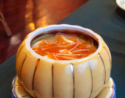 金象湾金榜店,吃泰国菜,冬阴功和咖喱鸡肯定是必点的。冬阴功装在可爱的南瓜盅里,讨巧又诱人,喝一口汤,酸酸甜甜暖到心里。咖喱和肉类是绝配,浓郁微辣的咖喱和嫩滑的鸡肉,让我不由多添了一碗米饭。泰式烤牛舌,颠覆了我以前对牛舌的认知,烤得很嫩很香,沾上秘制的酱汁,绝对让你欲罢不能,这个一定要试一下!