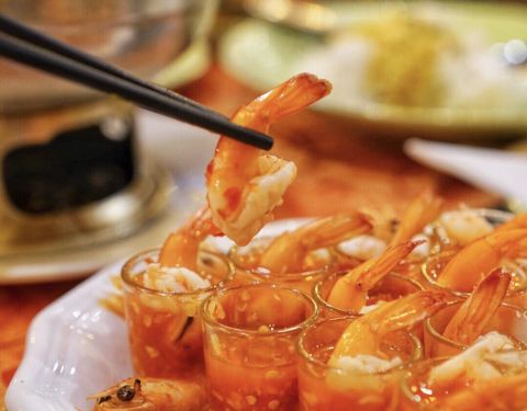 #香茅浸虾#这道菜算是我比较喜欢的一道了,去了外壳的虾浸在厨师调制的香辣汁里,真的很入味