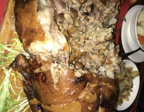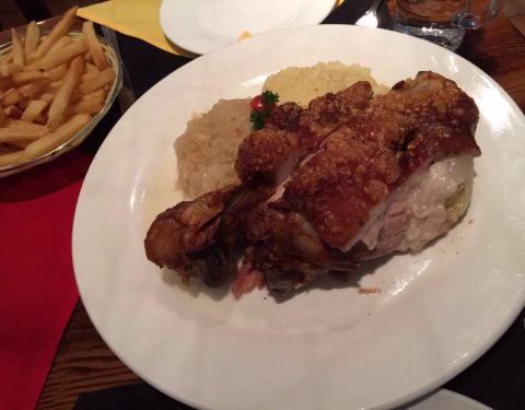 德国菜就是欧版的东北菜,分量惊人!烤肘子,里边儿是土豆泥和酸菜,这些是多经典的东北菜搭配啊。环境和服务没得说。