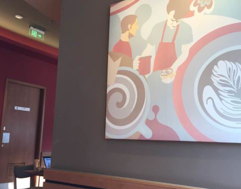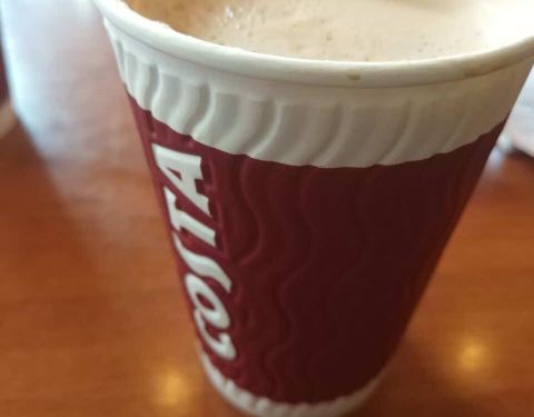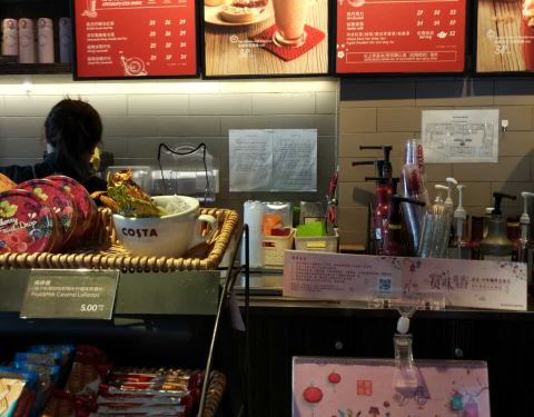 星巴克人太多 去了Costa 国瑞里不能直接进去不方便 面积不大 人相对还好 有地儿 选了抹茶拿铁和拿铁 咖啡味儿不重 奶味浓 最近胃不好 倒是很适合 很可爱 商家优惠活动挺值的
