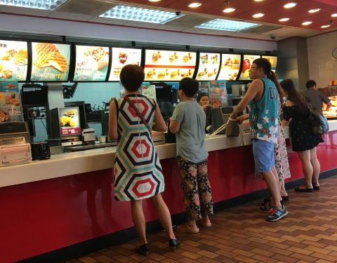 ...位置比较优越,观音桥玩累了,可以到这儿点杯饮料,吃个汉堡,休息休息,这家店地下一层也有不少位置