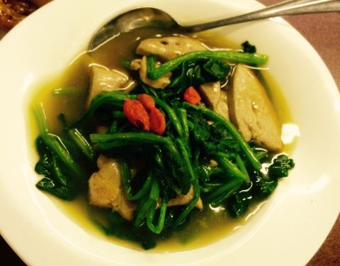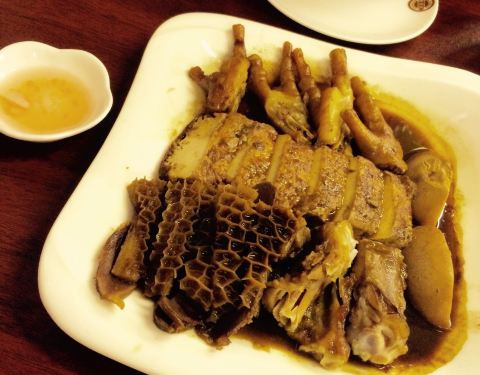 听名字还以为是东北菜,进去才知道是广味港味餐厅! 餐厅环境老棒了,特别复古,有二层小阁楼,很有味道,还贴着老照片。 甜品拼盘: 甜甜的也不腻,莲子百合红豆沙+自制杏仁露+芒果烧仙草+苹果水梨炖南北杏园肉 。我最喜欢杏仁露和红豆沙~ 吊烧鸡: 外酥里嫩,沾着酱汁 别有一番滋味。 猪油捞饭:油而不腻,猪油特别香,听说是有秘制方法 可是独家喔 菠萝咕咾肉:味道不错,外皮有些硬了。 菠菜浸猪肝: 猪肝嫩嫩哒 乾坤猪蹄:两种味道的猪蹄,筋道有嚼劲,炸的那个脆脆的,不腻,推荐! 卤水拼盘:味道蛮好的~ 由于点了太多道美食,回忆起来有点费劲,是“好吃到失忆”的那种哈哈哈哈!还会再次光临哦~