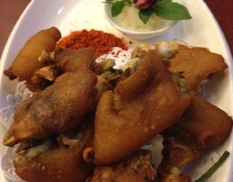 ...蹄,外酥里嫩,猪蹄确实不错,炸得跟酥脆,虽然略腻,但被香酥口感所平衡,如果配上辣椒面味道超级赞