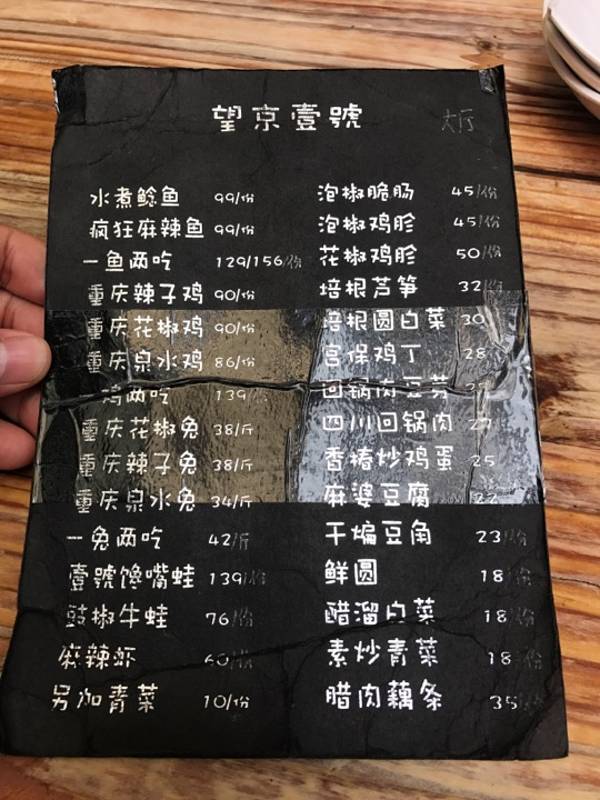- 望京一号的菜谱非常简单,却有特色,所有的菜品密密麻麻写在一张32k的纸上,白字黑纸,主打菜是水...实用
