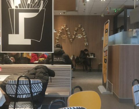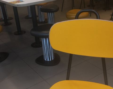 炸薯饼,土豆裹着面糊,一片比较薄,刚出锅的很好吃。麦当劳的装修,整体都是整洁,干净,明亮的