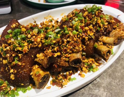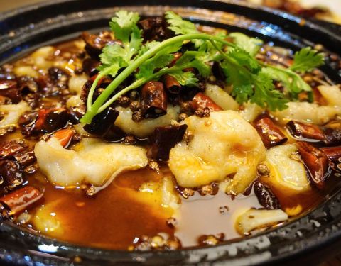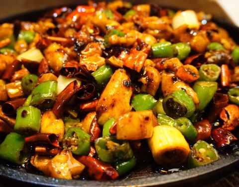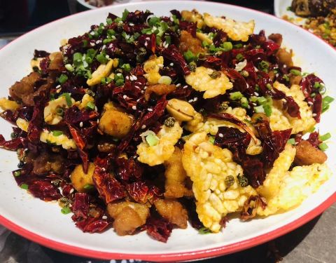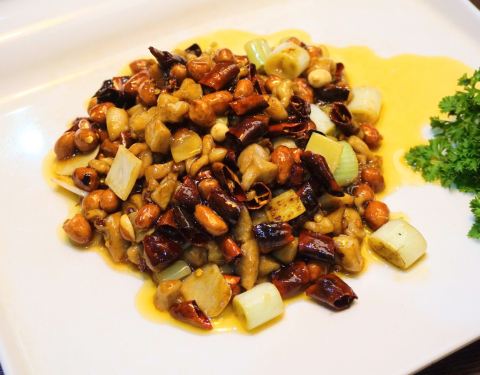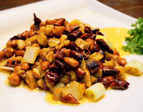 一个很喜欢这家的小伙伴带来的,话说她应该都把这里当成她的食堂了,然鹅我还从来没有吃过。 之前也有几个小伙伴向我推荐过他家,最有特色的那道菜也是我好奇的,正好可以尝试一下。 【雪花鸡淖】48,很多年的传统老川菜,但继续做这道菜的餐厅不多,确实难得一见。样子也比较奇特,泥gaogao状,用鸡胸肉打成浆和猪油炒制,最后火腿末点缀,色泽向雪一样洁白因此得名。口感软嫩细滑,像鸡汁蒸蛋。虽然朋友喜欢,但确实不是我的菜,尝了一口就遭打闷了,就此作罢。 【宫保鸡丁】30,对于这种甜味儿的川菜一直都不太感冒,除了鱼香。既然小伙伴说的他家的招牌菜自然还是不得不试的。确实没有想象中那么甜腻,咸甜味的比例恰到好处,而且鸡丁肉质不柴非常滑嫩。 【火焰兔】68,虽然也有些回甜,但更喜欢这道菜的味道。酱汁香浓,兔肉细嫩Q弹又入味,干海椒和青椒让这道菜更添色彩,也更香。况且这里的兔肉没有骨头,让人忍不住一口接着一口。 【椒香糊辣鱼】68,龙利鱼做的呛香味道,其实这种没刺的鱼肉还是蛮喜欢的,不过这道辣味不足,多吃几块略显油腻。 【叉烧酥】这个确实不行。酥皮倒是挺酥的,但叉烧实在太少,一口咬了一半都没有发现内陷儿,我还以为上错菜了呢。就像包子一口咬下去没有吃到馅儿,我就以为是馒头了。 环境就是一般中餐厅,有几个包间,适合商务宴请。