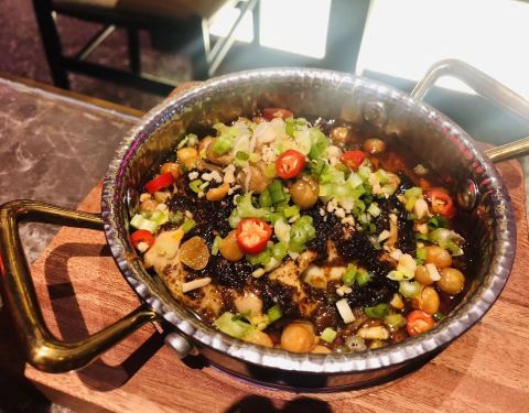 雪花鸡淖,看得像豆腐,入口很鲜,是用鸡胸脯肉和蛋白制作,口感软嫩,非常鲜美,回锅甜烧白,甜而不腻