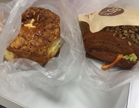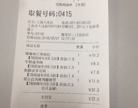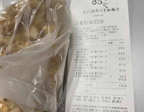 会员日活动的最后一天下午才知道,每天中午在附近午饭,压根就没注意。让人头疼的早餐问题就这么解决了,3口之家一顿早饭还真不便宜,买了这一堆面包共支付了43.8,比原价便宜6.2。蛮好的!省下的钱可以买一副大饼油条配豆浆了