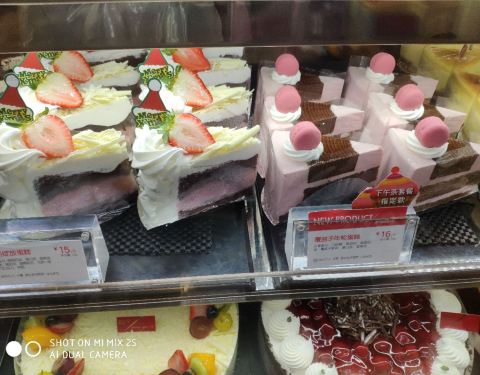 吃的最多的一家85度面包店,各种款型都品尝过,味道还不错,这次来买面包又发现了一款新品,等宝贝回来买给她试试!我喜欢吃慕斯蛋糕和粗粮面包,还有菠萝酥