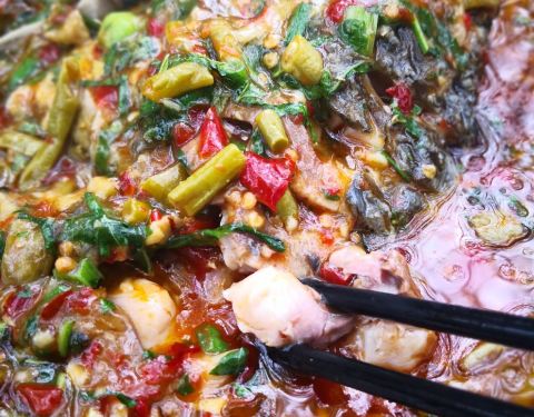 - ...鲜嫩的鱼肉,好新鲜的感觉,然后就开始不断的捻,汤汁真的好吃,舀一勺,伴着白米饭,你绝对不会后悔