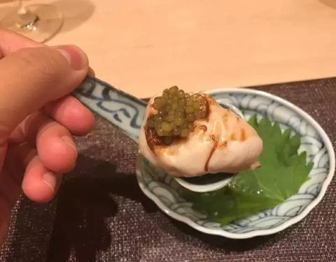 超级像大肘子的鮟鱇鱼肝,超级好吃哈~当晚用的大连鲍,日本鲍六月底才有货