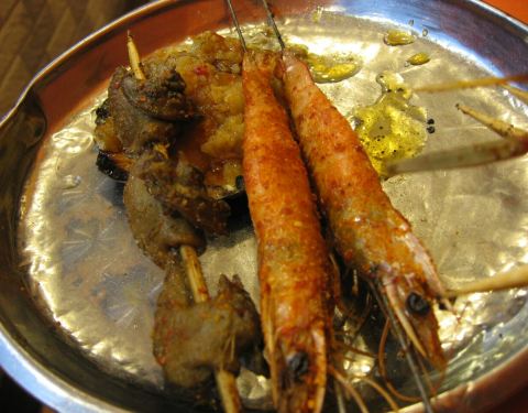 ...,这家分店有烤串,点了一些,味道还可以,生蚝不差,烤虾也不错,鸡翅很好吃火候好,人热闹适合聚会
