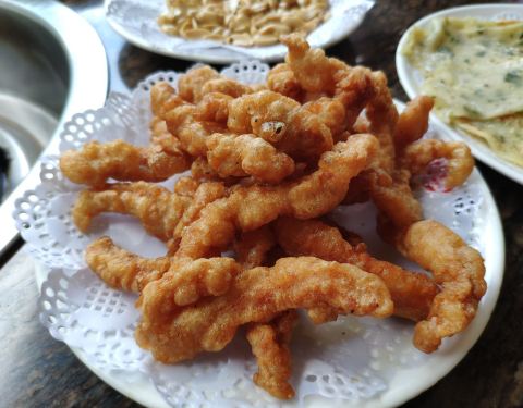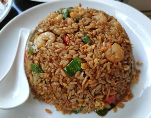 幸运的在其他网站抽中了这家一百元的代金券,提前打电话询问中午可以使用就过来尝尝。 [环境]在一个路口上,店堂还很大,风格有点老旧且很暗。装修风格只适合老年人,想抓住年轻顾客可能要考虑重新装修。 [服务]刚开始一个貌似领班的女士说必须点一个火锅底,我看点评别人用券也是只吃了小吃她才勉强同意用券。也没有人来倒水,都是自己动手。 |酥肉^炸得很合适,肉也很瘦,再多点花椒更好。 |海鲜炒饭^分量很足,虾挺多的,味道好。 |香菇鸡肉包^这个也挺好吃的。 |辣炒花甲^麻麻辣辣很大一份,好吃。 |珍珠汤圆^小小的一碗,不错。 |野菜薄饼^这个一般般。 小吃味道都可以的,听说是现做,可以去尝尝。