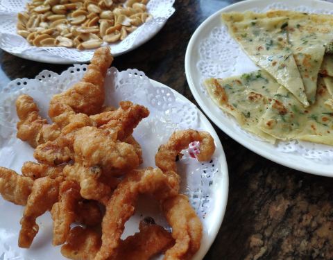 |香菇鸡肉包^这个也挺好吃的。 |辣炒花甲^麻麻辣辣很大一份,好吃。 |珍珠汤圆^小小的一碗,不错
