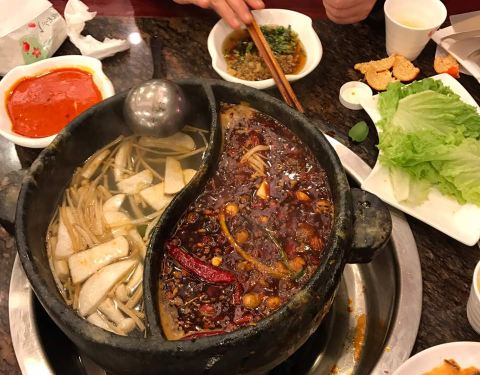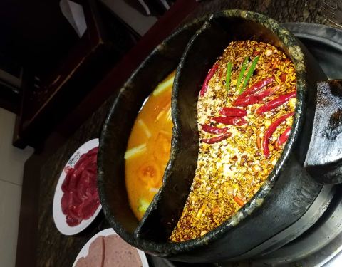 ✔️鸳鸯石头火锅 墨脱石做的锅保温效果更好,也可以让食物的香味保存的更久~ 他家的鸳鸯也很特别,是牛油+清油锅底,麻辣鲜香,吃起来不上火,老少咸宜真的就很棒!