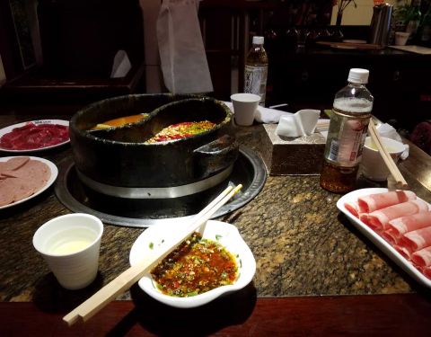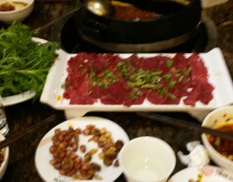 这次点的红锅,他家的特色就是锅底用石头锅盛上来的,蘸碟是自助的形式,可以依据个人的口味调制,还有冰粉,口感很好,还有各种蔬菜和水果。嫩牛肉,猪脑花,毛肚,鸭肠都很新鲜,分量也足,烫一下,吃起来很巴适。这次点的红锅,他家的特色就是锅底用石头锅盛上来的,蘸碟是自助的形式,可以依据个人的口味调制,还有冰粉,口感很好,还有各种蔬菜和水果。嫩牛肉,猪脑花,毛肚,鸭肠都很新鲜,分量也足,烫一下,吃起来很巴适。