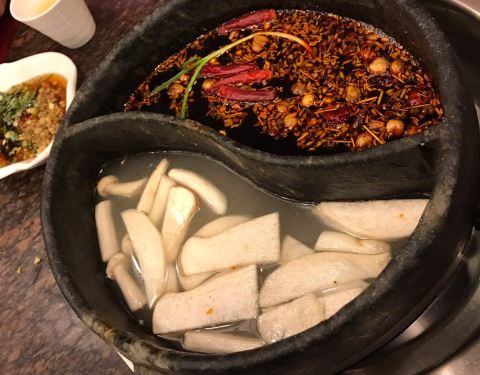 吃了那么多火锅了,还是第一次吃石头火锅,感觉很新奇,味道也很好吃。火锅店很大,味碟是自助的,还有免费的水果小吃等,店员都很热情,帮忙端菜端茶等动作都很快。这家火锅店还有个最大的特色就是冬阴功鸳鸯锅...