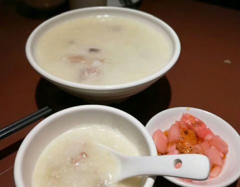 - 全记黑棕烧鹅烧鹅是现烤的,非常的肥美,表皮酥脆,肉很有味。皮蛋瘦肉粥,粥非常的软糯,入口即化