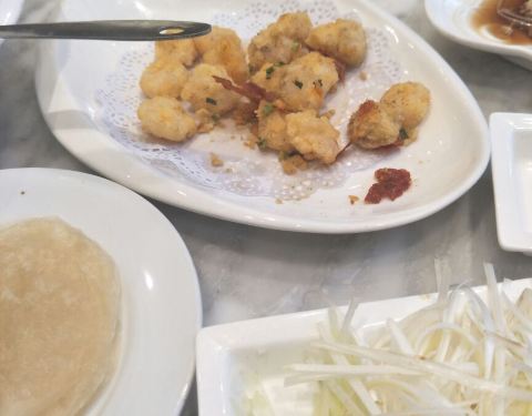 - 椒盐虾仁还没自己家做的好吃,全是粉;酸辣汤,呵呵呵,像*一样,全是胡椒粉