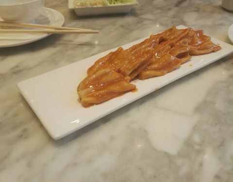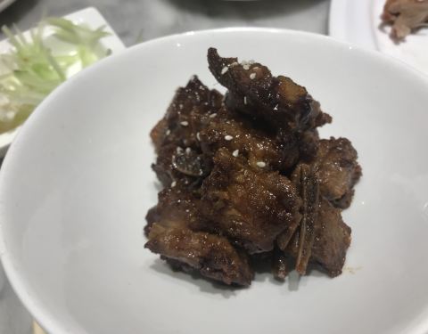 燕云楼主打烤鸭,也是他们家特色,烤鸭有几种吃法,我比较喜欢片皮鸭,包饼很好吃,鸭子骨架他们家也有烧汤,也很入味,人气很旺。
