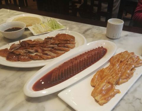 - ...特色,烤鸭有几种吃法,我比较喜欢片皮鸭,包饼很好吃,鸭子骨架他们家也有烧汤,也很入味,人气很旺