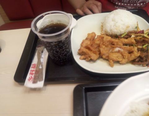 平时这家店人很多,今天估计过了饭点了,没得几个人!点的爱心咖喱鸡排饭,居然没有咖喱了,说要等等,我去!不过味道不错,份量也够!很好!