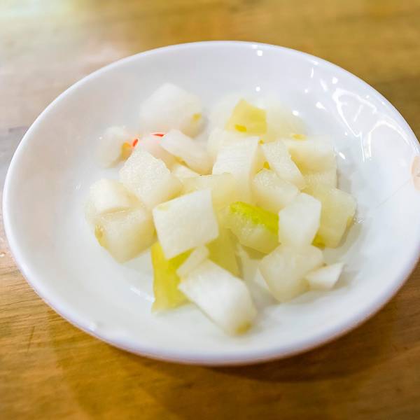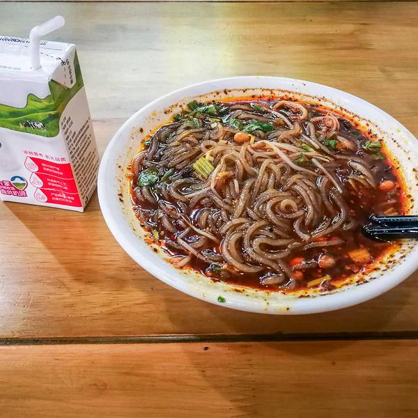 离武侯祠一站公交车站的距离,走路10分钟,一大早先来这里吃早餐,然后再慢慢走去武侯祠,景区正好开门。 既然店名是肥肠粉,当然要点肥肠粉了,味道还不错,粉是用红薯做的,入口爽滑,肥肠处理得很干净,煮得也比较软。 付款后得一个好牌,找好位置坐下,餐食做好后会由服务员根据单号直接端到你桌前。