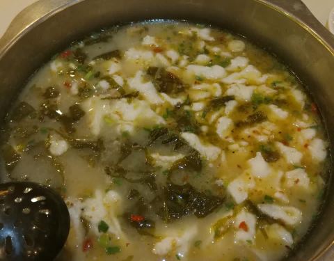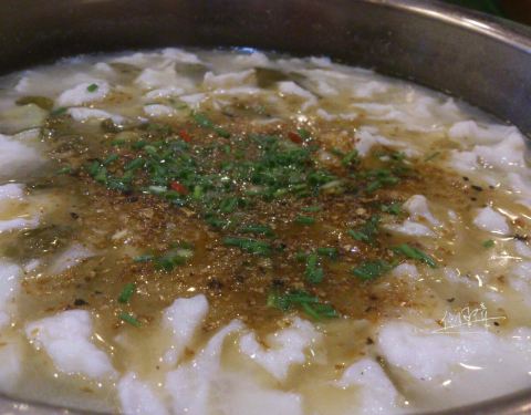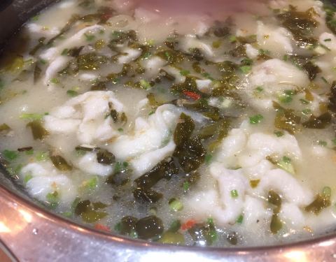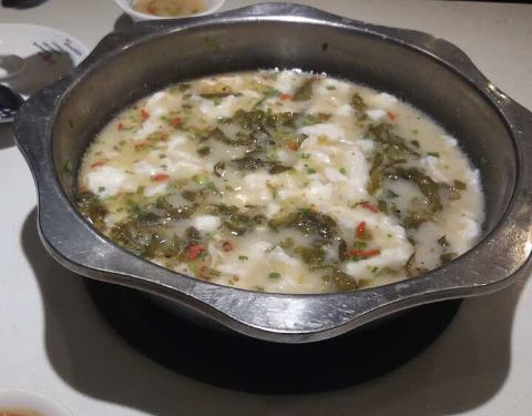 他们家一道饭点 生意可是很红火的呢 为了避开高峰时间段 77跟小伙伴四点半就过去啦 酸菜鱼(小青) 三个人要的小份的 分量一点都不少的哟 足够了呢 酸菜鱼片很嫩的 吃起来的时候还是要小心点 有鱼刺的...