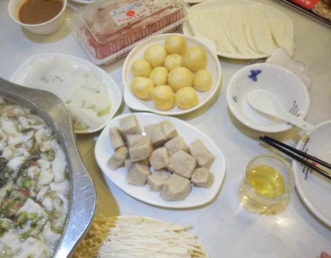 他们家一道饭点 生意可是很红火的呢 为了避开高峰时间段 77跟小伙伴四点半就过去啦 酸菜鱼(小青) 三个人要的小份的 分量一点都不少的哟 足够了呢 酸菜鱼片很嫩的 吃起来的时候还是要小心点 有鱼刺的...他们家一道饭点 生意可是很红火的呢 为了避开高峰时间段 77跟小伙伴四点半就过去啦 酸菜鱼(小青) 三个人要的小份的 分量一点都不少的哟 足够了呢 酸菜鱼片很嫩的 吃起来的时候还是要小心点 有鱼刺的 辣子鸡 朋友看到辣子鸡就突然想念了 个么就来一份呗 炸的火锅蛮好的 皮很脆 只是面粉多了些呐 另外还要了墨鱼丸、牛百叶、金针菇、油面筋、生菜、土豆、冬瓜 都是些平平无奇的配菜啦 价格也算是平价的了~