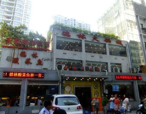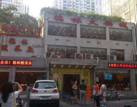 德林火锅在上海算是蛮有名气的,招牌是酸菜鱼锅底,鱼肉肉质嫩滑,酸菜爽口,也够酸,比较开胃。除了酸菜鱼外,其他东西跟别的火锅店差不多。由于量比较足,价格也实惠,所以开了十几年了,人气依然那么旺。 店面装修的很简陋,但这并不影响人气,破旧的墙面上贴满了老板和体育明星、演艺明星的照片,破旧的店门口停满了名车,这就很能说明问题了。大半夜了还有不少朋友围坐在一起,边吃边聊。