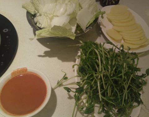 他们家一道饭点 生意可是很红火的呢 为了避开高峰时间段 77跟小伙伴四点半就过去啦 酸菜鱼(小青) 三个人要的小份的 分量一点都不少的哟 足够了呢 酸菜鱼片很嫩的 吃起来的时候还是要小心点 有鱼刺的 辣子鸡 朋友看到辣子鸡就突然想念了 个么就来一份呗 炸的火锅蛮好的 皮很脆 只是面粉多了些呐 另外还要了墨鱼丸、牛百叶、金针菇、油面筋、生菜、土豆、冬瓜 都是些平平无奇的配菜啦 价格也算是平价的了~