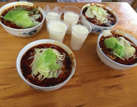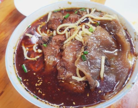 招牌牛肉面,28一碗,里面都是大块牛腱肉,性价比很高。口味超级棒,你能想象一碗面条的汤汁能吃出火锅的味道么?真正的麻辣鲜香,一碗下肚胃快燃烧了,背部微汗,超爽!面条劲道,豁到咸菜和葱葱,面几哈就捞完了,豆浆一块钱一杯,面太油了,需要一杯解腻。不提供免费纸巾,重口味,必自备。