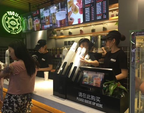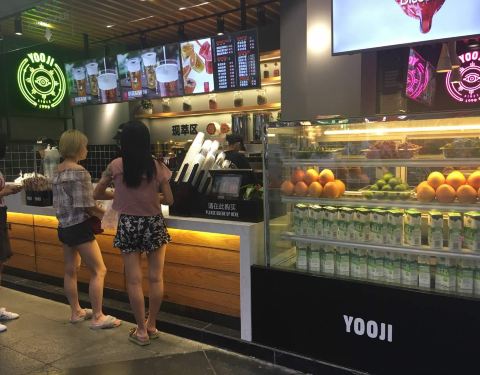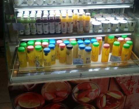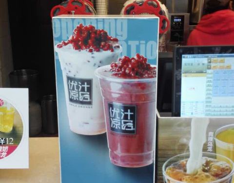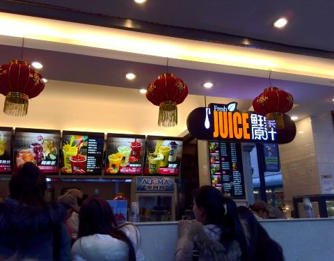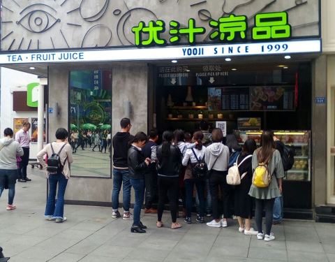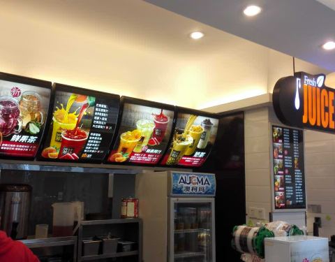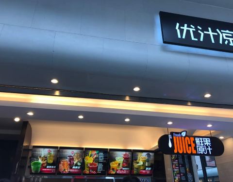 - 一家门面不大,装饰新潮、连锁经营的知名果汁饮品店,位于成都春熙路商圈内,这里为顾客提供数十款精美饮品