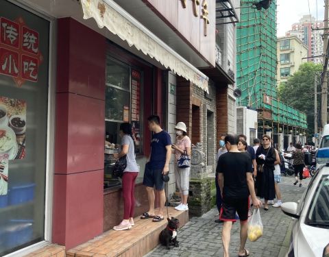 早晨懒得在酒店吃乏味的自助餐,所以来到了这家老字号。 这家店可能在居民区的缘故,堂食人不多。 听说总店经常需要排队,我来之前没有做太多的攻略,所以直接问了店员,你们家最特色的是什么? 店员跟我推荐了小馄饨和锅贴,确实挺不错的,大家如果有机会的话一定要来试试。 门口很多本地的大爷,大妈们在排队,疫情期间,不可以人员聚集,所以我没去凑热闹。不知道他们在买些什么。