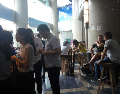 开在均瑶国际广场一楼大堂的一侧,人总是那么多,大概都是楼里的白领来买的,一人往往买好几杯,所以等候时间漫长。