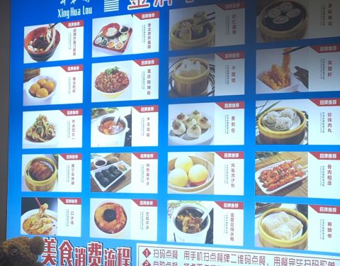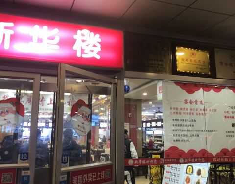 - 新华楼,很大的一家餐厅,一楼小吃(全国各地的小吃几乎都有),二楼湘菜。环境不错,入座扫码点餐