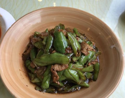 算是长沙比较有名的餐馆了,也是慕名而去的,环境很好,天气很热里面开着空调很是凉快。点了口水鸡和辣椒炒肉,就是好辣,不是太习惯。