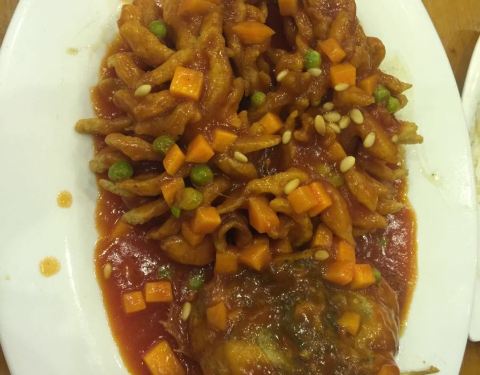 他家的椒盐排条 , 松子鲈鱼 , 红烧带鱼 , 蟹粉豆腐 , 糖醋排条味道还是很不错的,环境也是很好的