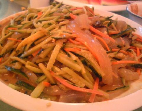 朋友聚会,最爱的是蒜香牛舌,味道咸香不腻,牛舌软嫩入味,火候恰到好处;用腊八蒜提味是挺特别的做法,完全吃不出牛膻味,而有醋的香味,只是蒜味淡了些。总的来说,很好吃。焦溜胸口味道也很正,只是瘦肉有些柴,肥肉很好吃,香而不腻口感Q弹。馕香肉也不错,其实是馕饼上面盖浇上孜然羊肉,羊肉味道很正,只是有些是边角下料,希望能真材实料;主要是馕饼极好吃,薄而有嚼劲,被羊肉的汤汁一泡却变得软而弹,还很有味道,有点像比萨饼哟,不错!