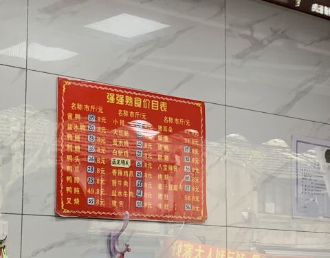 很有人气的一家熟食店,饭点前后会有很多阿姨妈妈来买东西排队,强强熟食店有3个窗口,一个窗口是卖烤鸭,一个卖卤水熟食的,最后一个窗口是卖四川的拌菜夫妻肺片的,都很有人气,油鸡都是新鲜出炉的,皮滑肉嫩,味道非常香,熟食店最重要的是干净,平时和老公在家里不愿意烧菜的时候就会去他家买点熟食回来吃,有很多上海人喜欢的熟食,白斩鸡,鸭头,鸭翅膀,猪耳朵,大红肠,蒜泥凤爪,我最喜欢吃他家的烤鸭,皮很有弹性,非常香,肉很厚很好吃