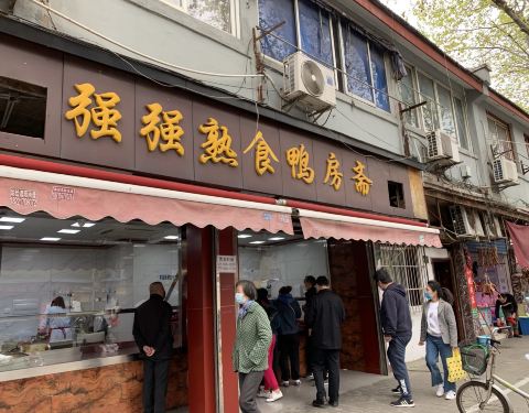 强强熟食店是一个开了十几年的熟食店。生意一向很好,口水鸡与烤鸭特别畅销,无论鸭肉还是鸭头颈,都非常好吃。所以每天下午是必排队的,晚了就卖光了。